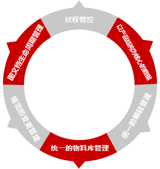 产品图纸、文档、零部件属性、BOM信息、技术状态等统一关联管理